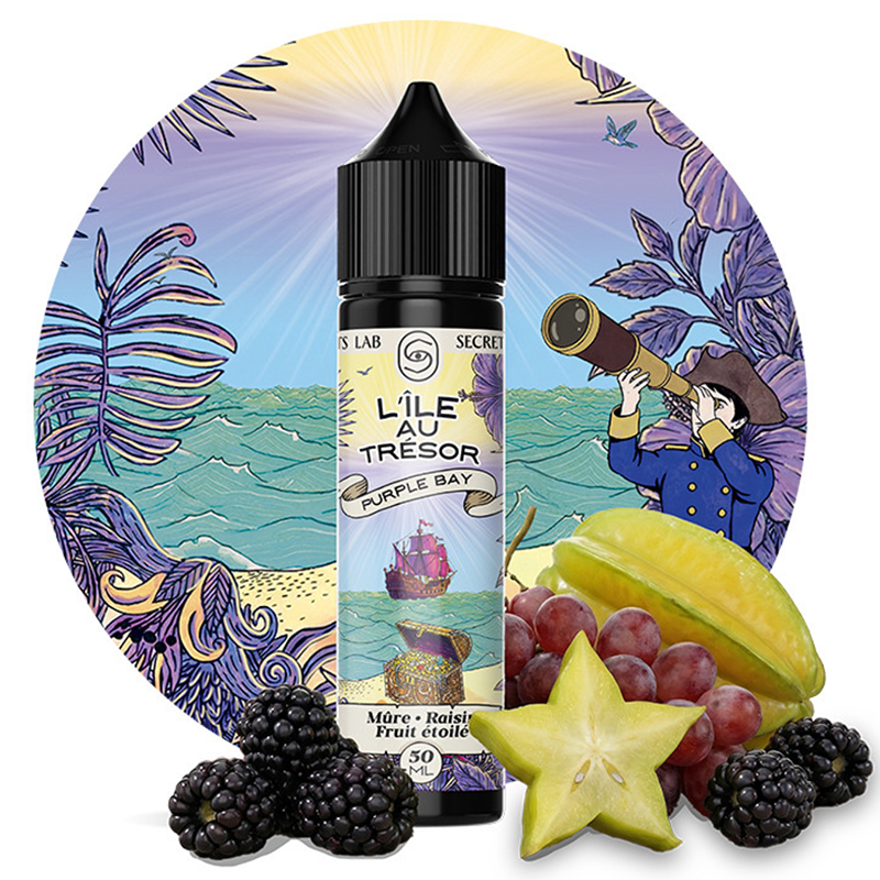 Découvrez le E-liquide Purple Bay 50 ml, une création de la gamme L’Île au Trésor par Secret’s Lab.