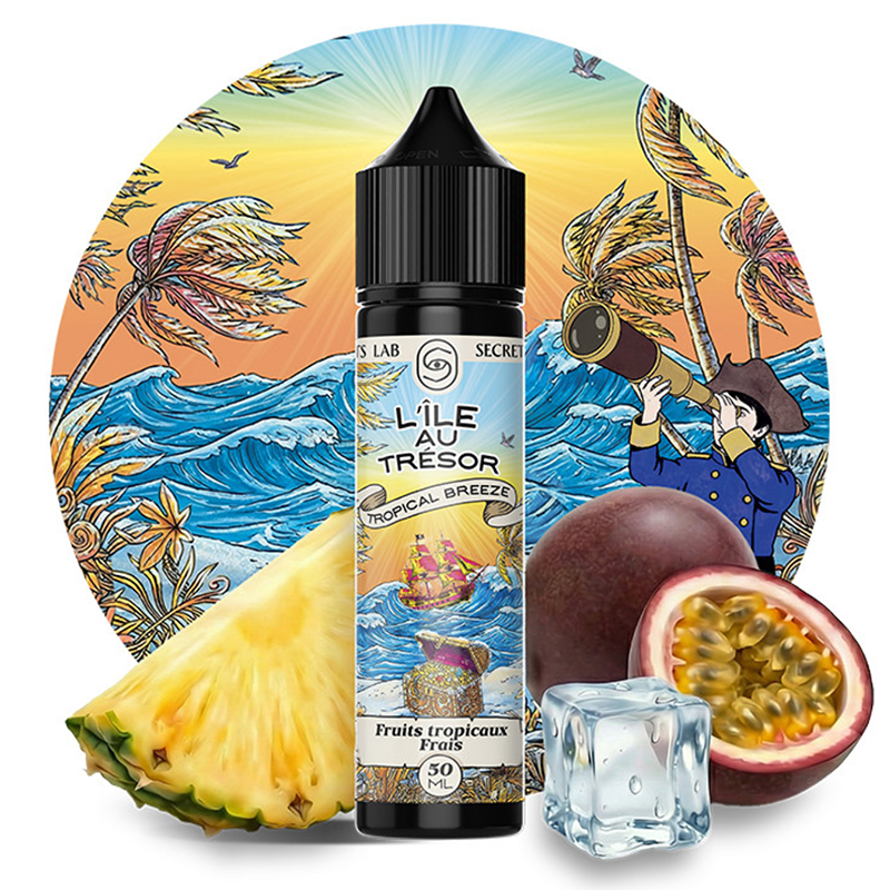 Découvrez le E-liquide Tropical Breeze 50 ml, une création de la gamme L’Île au Trésor par Secret’s Lab.