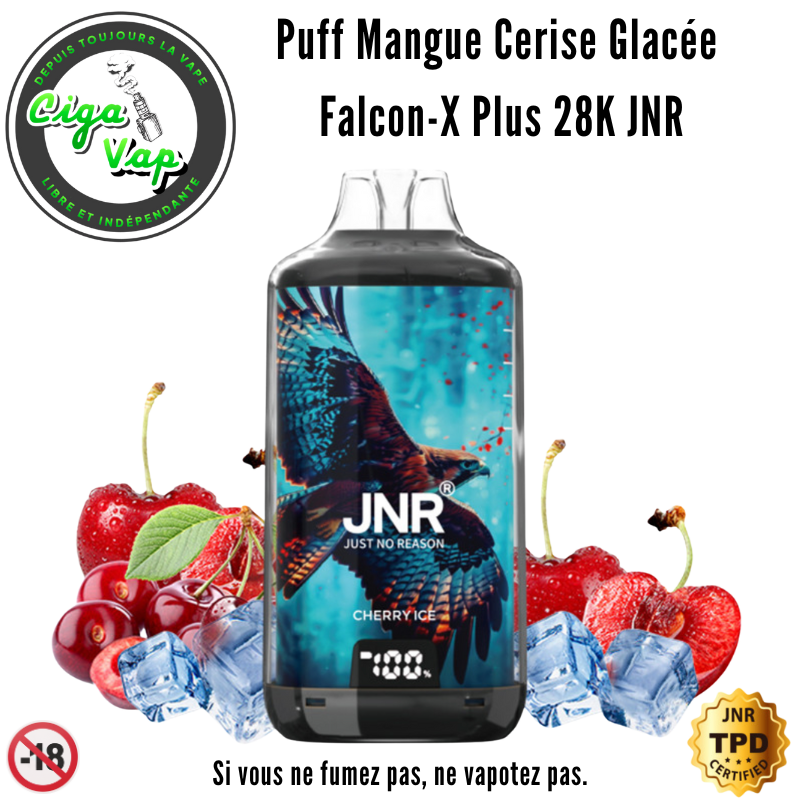 Puff Falcon X Plus 28k JNR appréciée pour ses saveurs fruitées et fraîche son autonomie permettant d’éviter de recharger fréquemment.